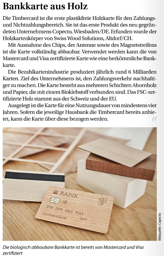 Sendung «10 vor 10» des Schweizer Fernsehens: Nachhaltige Kreditkarten aus Holz.